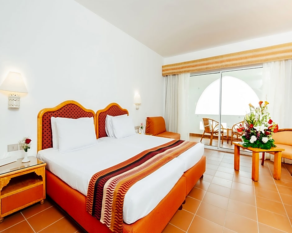 Oasis Queen or Twin Room - Partial Sea & Garden View - Triple Occupancy is 409 square feet and includes a double bed 131-150 width plus a sofa bed plus extra beds on demand, satellite tv , and bathrobes.